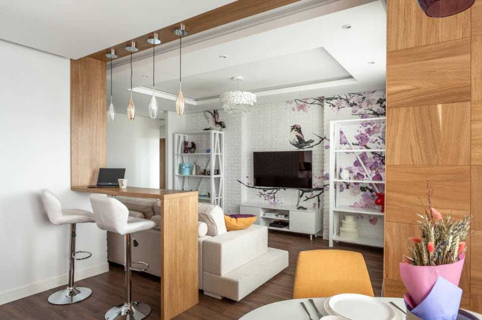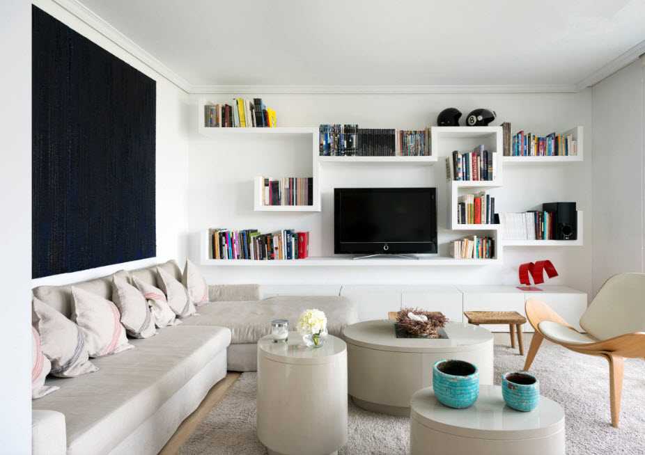 Одним из главных условий использования белого в интерьере является его обязательное разбавление другими цветами. Однотонная белая гостиная больше будет напоминать больничную палату или комнату, находящуюся в фазе ремонта. Чтобы этого избежать, необходимо добавить в обстановку цветную мебель, аксессуары, рисунки на поверхностях и даже оттеночное освещение. Белая база – это прекрасный способ дать волю фантазии и нанести на нее все свои пожелания.