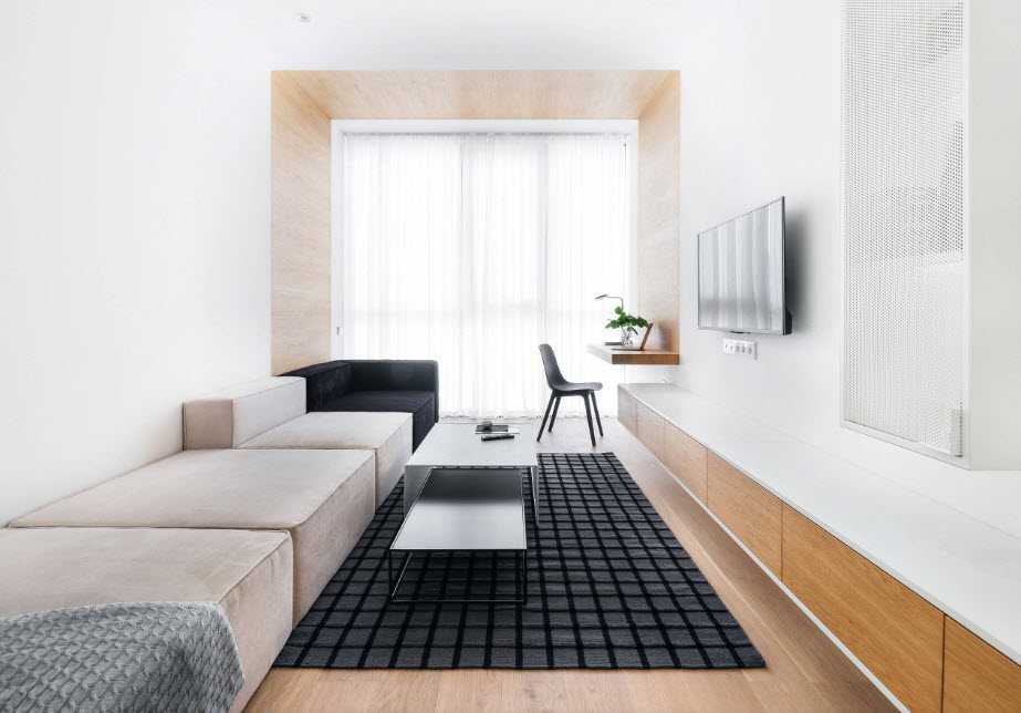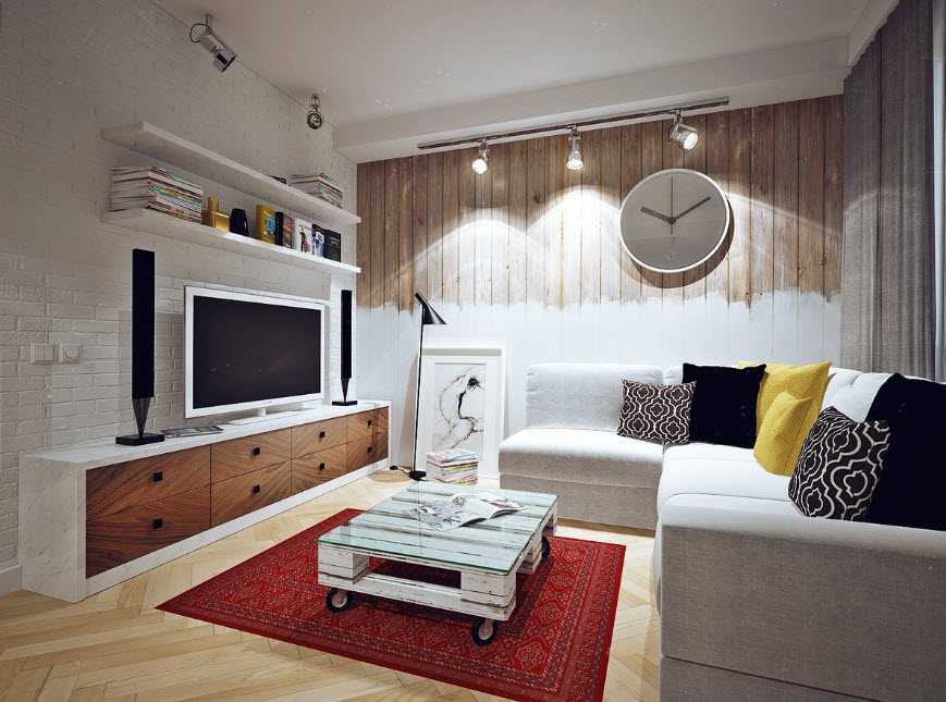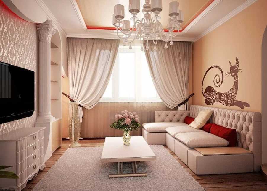 При оформлении небольшой гостиной важно визуально увеличить ее границы, что поможет сделать монохромная гамма. Что касается ярких акцентов и резких цветовых переходов, то от них лучше отказаться
