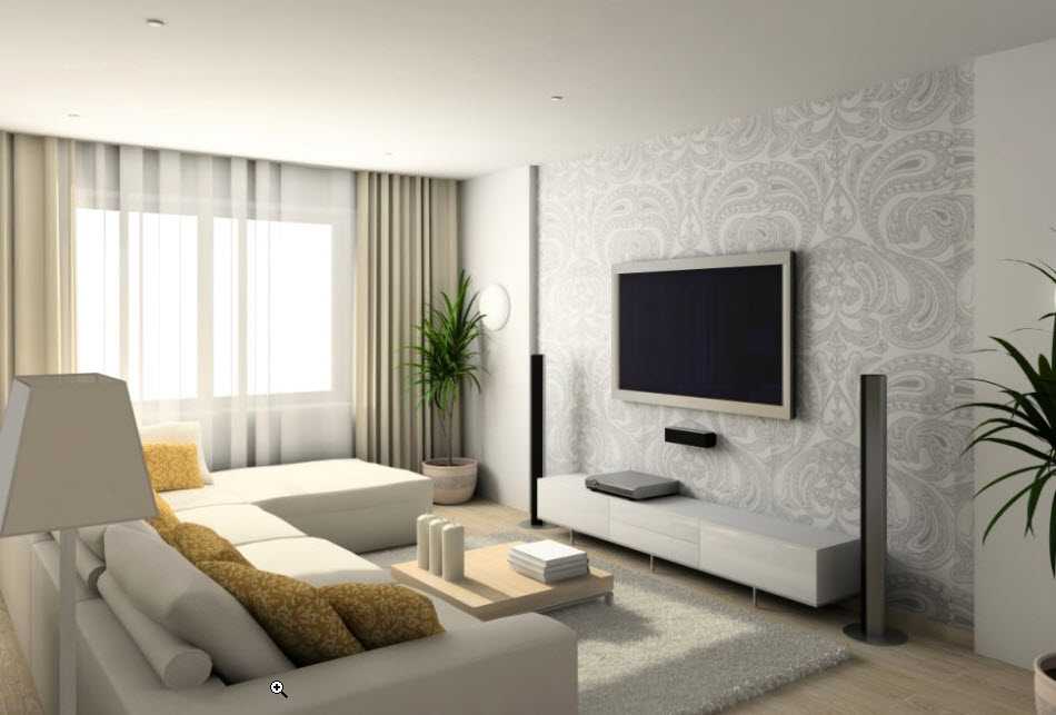Многие дизайнеры рекомендуют для отделки стен, пола и потолка выбирать белый цвет, но не все владельцы жилья одобряют такое решение, ведь помещение становится неуютным. Белая гостиная выглядит привлекательно, если сочетать ее с мебелью фисташкового, мятного или бежевого цвета.