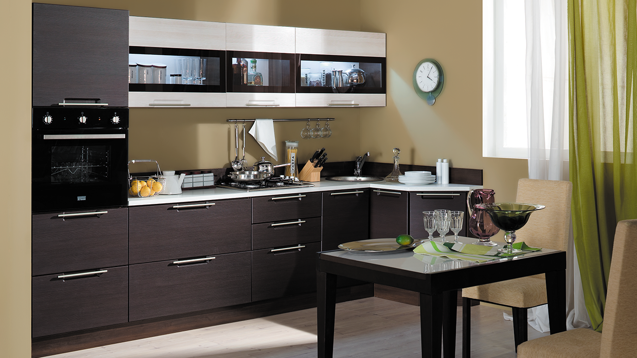 - Если кухня оформлена несколькими цветами, то оттенок верхних шкафчиков должен быть более светлым, чем нижних.