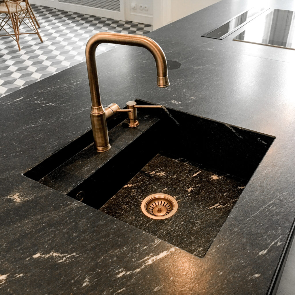 А может мрамор или серый оттенок? Гранитные мойки доступны в оттенках белого, бетонного, черного и коричневого. Это, в свою очередь, дает много возможностей, когда дело доходит до обустройства кухни.