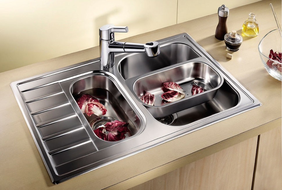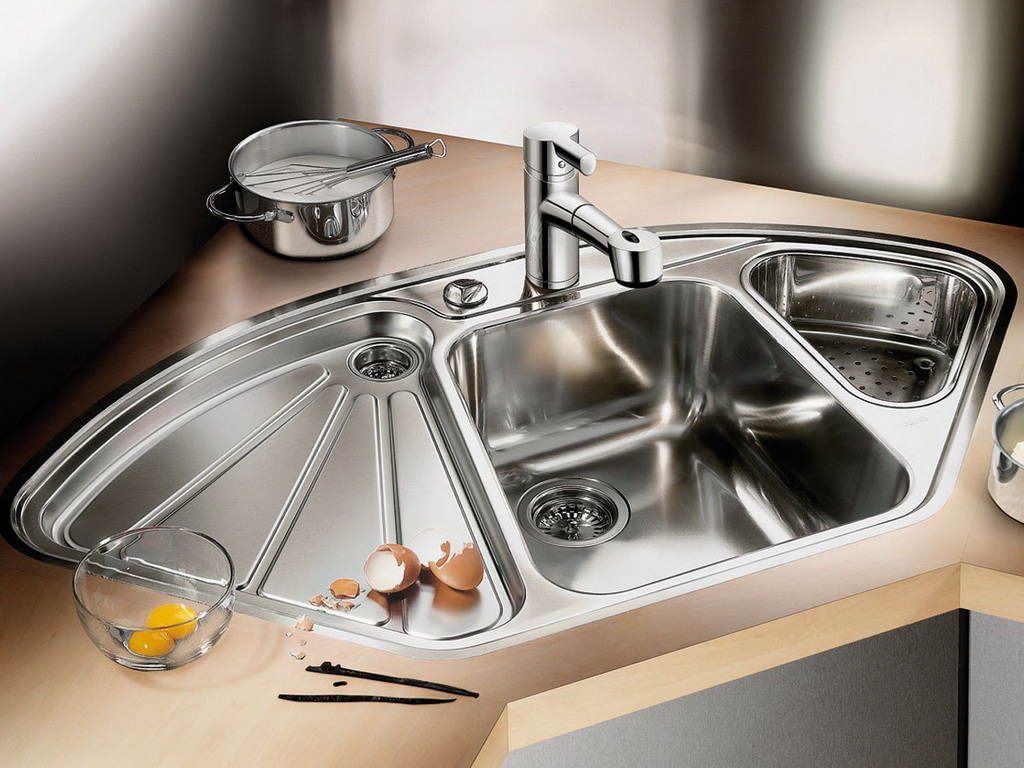 Для маленьких помещений можно выбрать мойку с тремя углами. Они компактно устраиваются на кухонной поверхности, но за счет формы удобны для больших тарелок или сковородки. В любом случае скромный размер можно восполнить глубиной чаши.