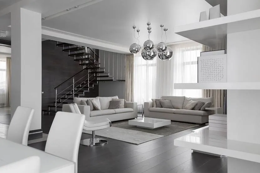 Минимализм подразумевает отказ от большинства аксессуаров, но это не значит, что интерьер должен быть скучным и пустым. Просто основную дизайнерскую функцию выполняет мебель и источники света. Разберем их подробно.