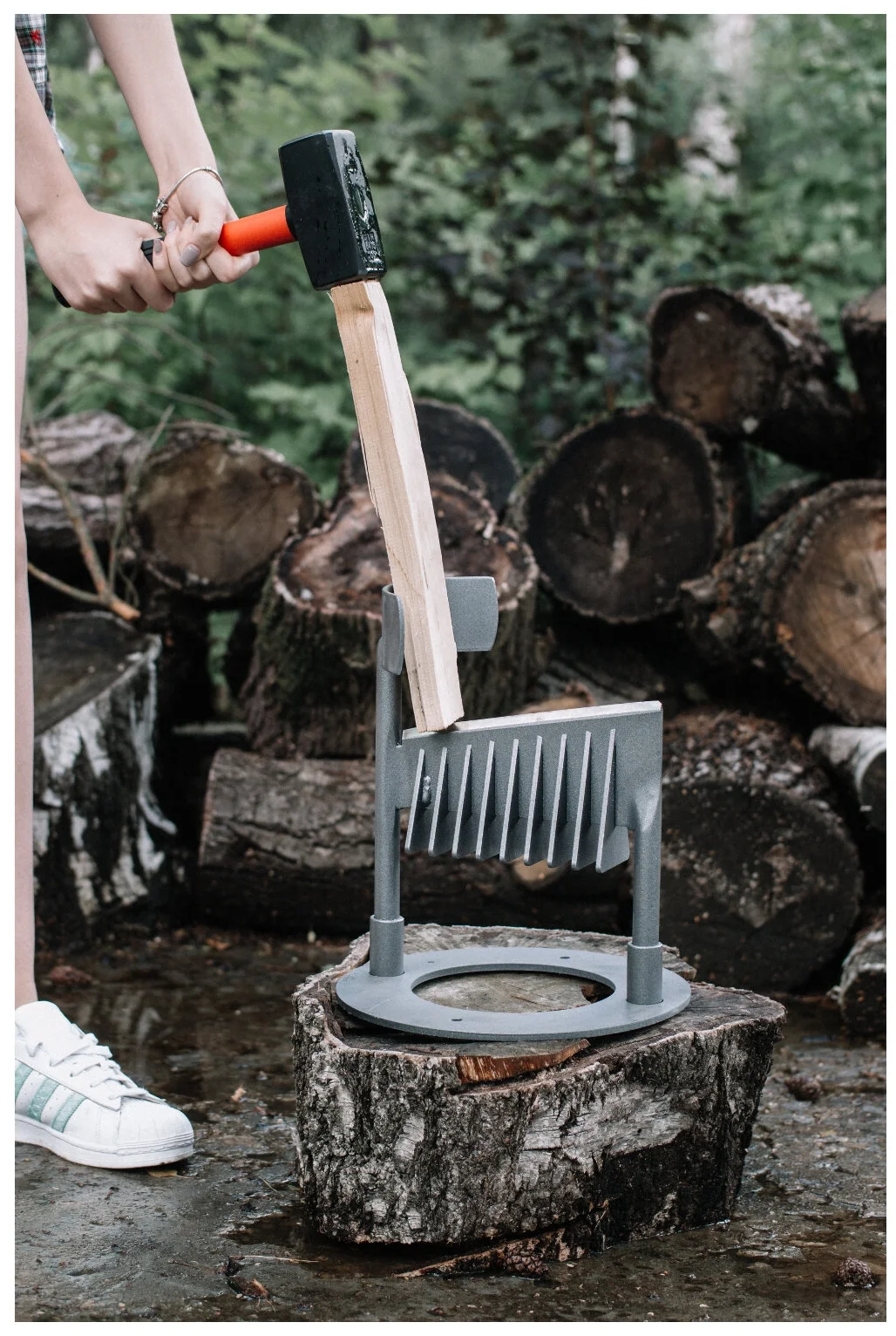 У меня есть свой дом, хозяйство, баня, построенная мужем. Живу одна и колоть дрова приходиться просить брата, сама я не владею топором, все же это тяжелая мужская работа. Брат привез себе в помощь ручной дровокол. Полено вставляется в кольцо, и при ударе кувалдой раскалывается на несколько частей. Все очень просто и безопасно даже у меня получается.