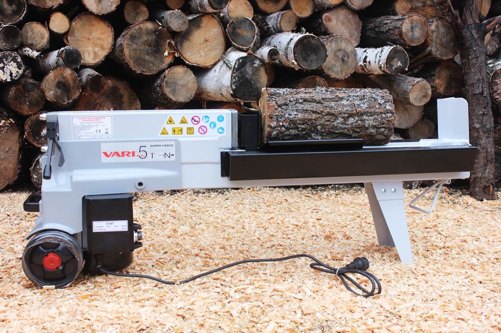Портативный дровокол мощностью 2200 Вт развивает усилие в 5 тонн, чего достаточно для расщепления поленьев длиной до 52 сантиметров.