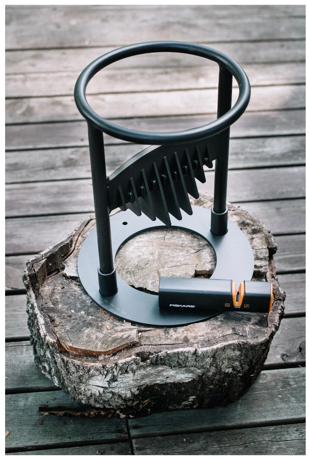 Развиваемое усилие тоже внуши тельное – 5 т, а вот диаметр заготовки рекомендуется не больше 25 см (хотя с 40-сантиметровыми поленьями, по словам владельцев, аппарат тоже справляется). Рабочая поверхность расположена низко, и по высоте дровокол не регулируется, так что удобнее всего работать с ним сидя. Это вряд ли можно назвать серьёзным недостатком – большие и тяжёлые поленья не нужно поднимать на большую высоту.