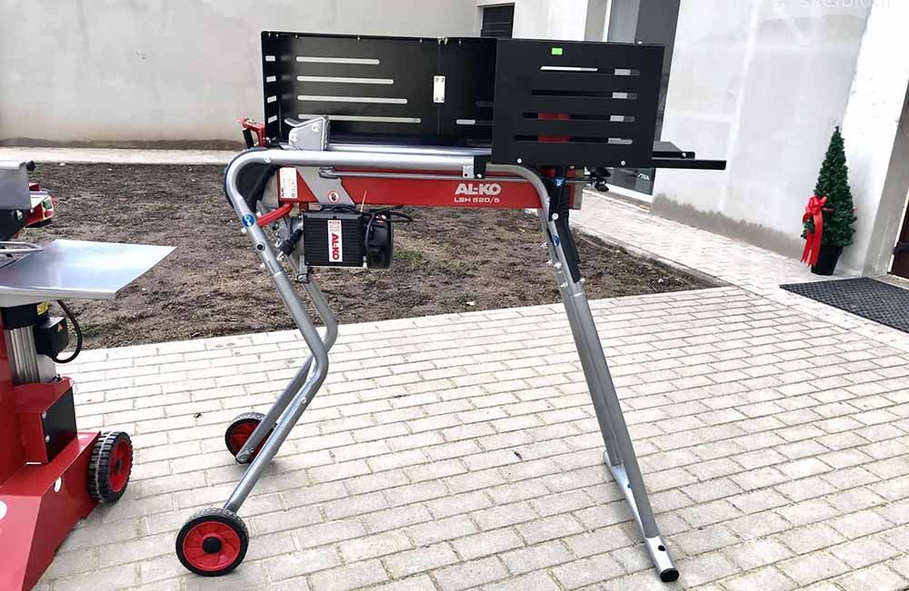 Среди особенностей этой модели стоит отметить насадку для разделения поленьев на четыре части и наличие колес для перемещения устройства. Кроме того, предусмотрена система блокировки от случайного запуска и защита от перегрузки.