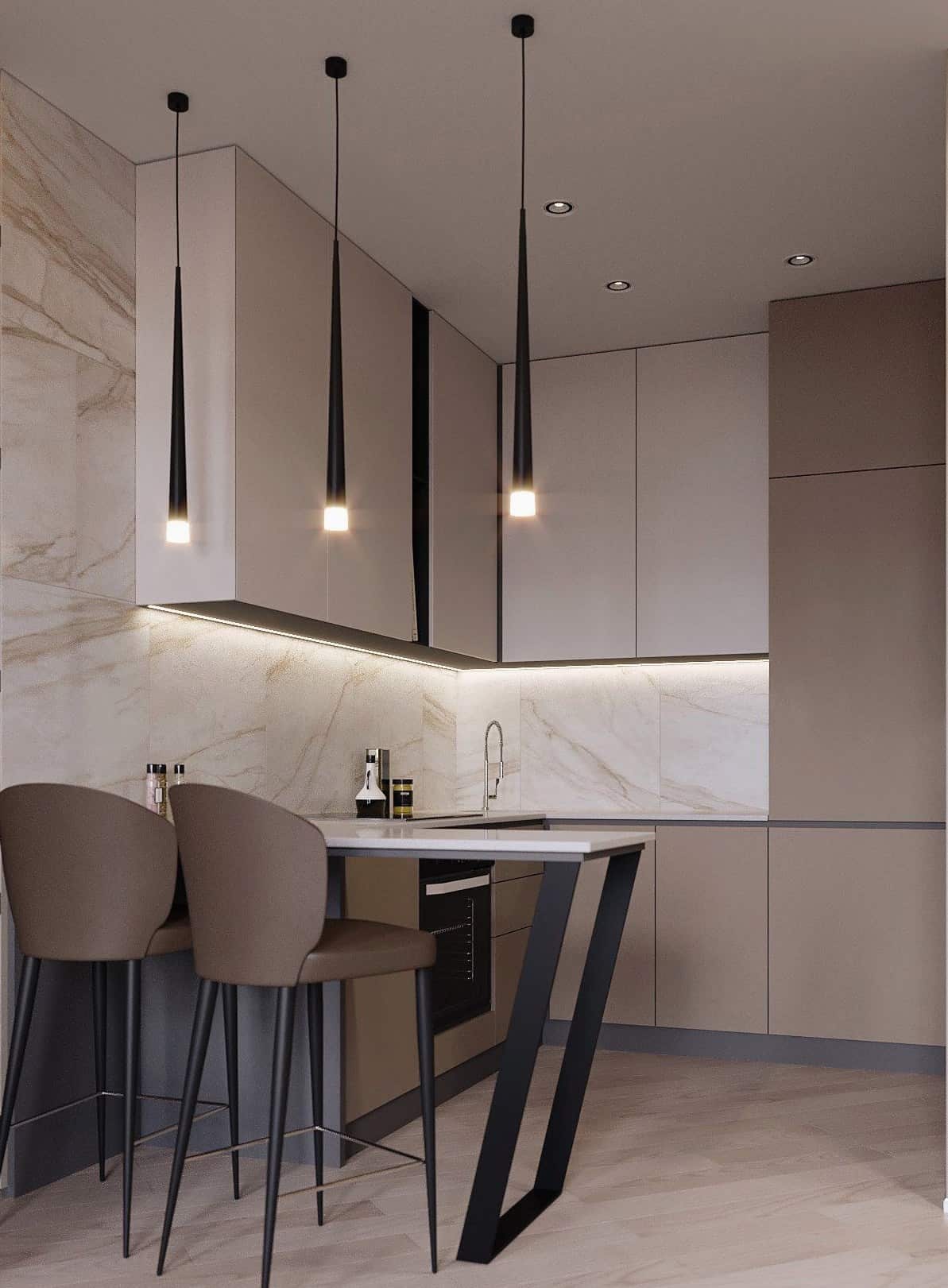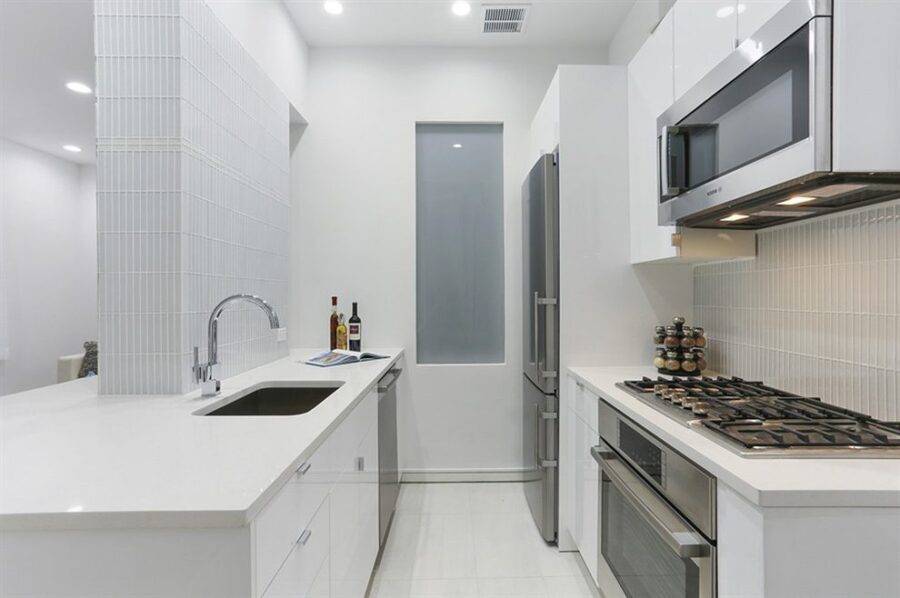 Линейное расположение кухни позволит сохранить больше свободного пространства