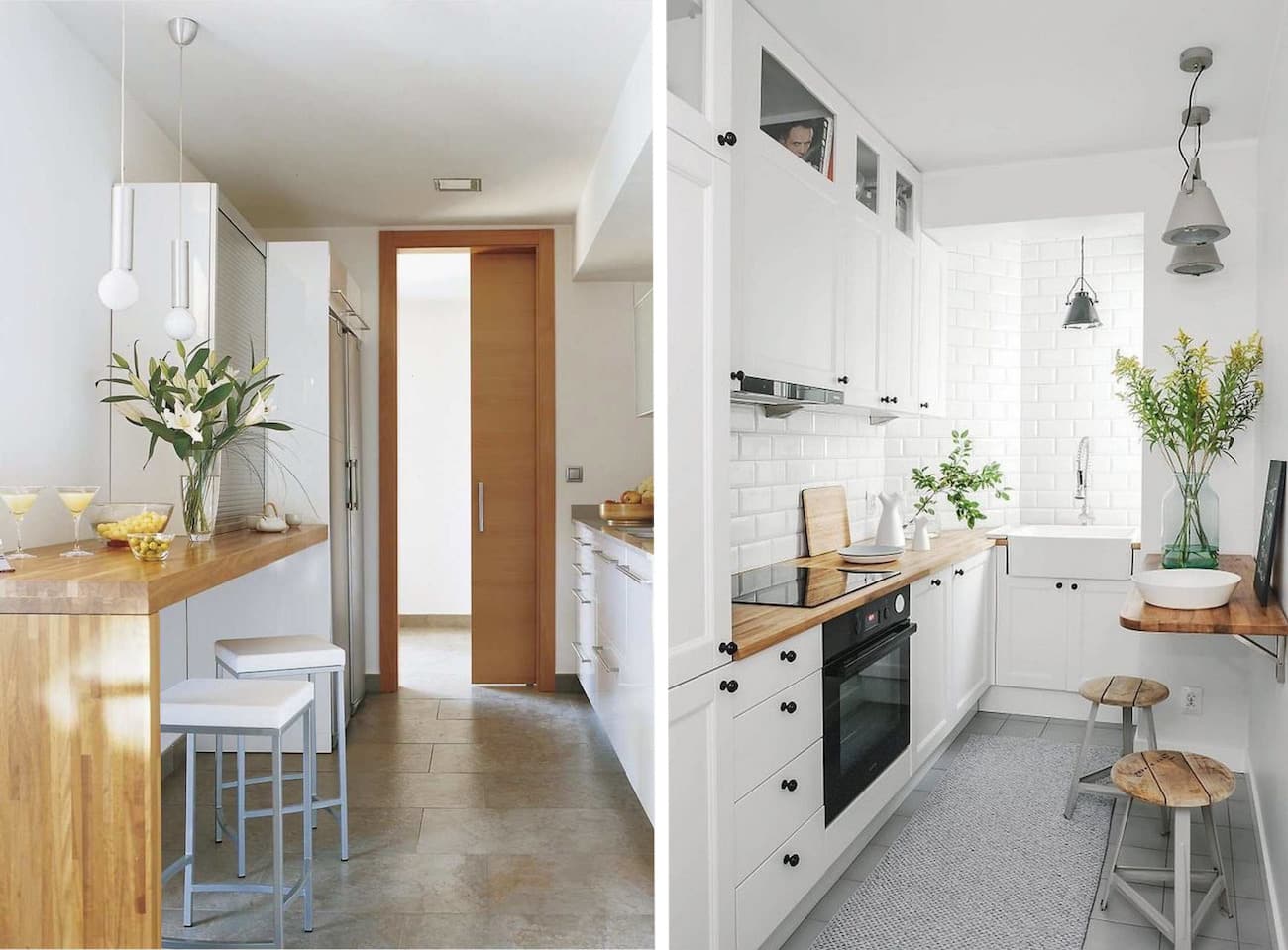 Комбинация белого цвета и дерева натурального оттенка очень приятна глазу, а еще она универсальна, а главное — просто создана для реальной жизни. Неспроста белая кухня с деревянной столешницей и полом является одной из самых популярных во всем мире.