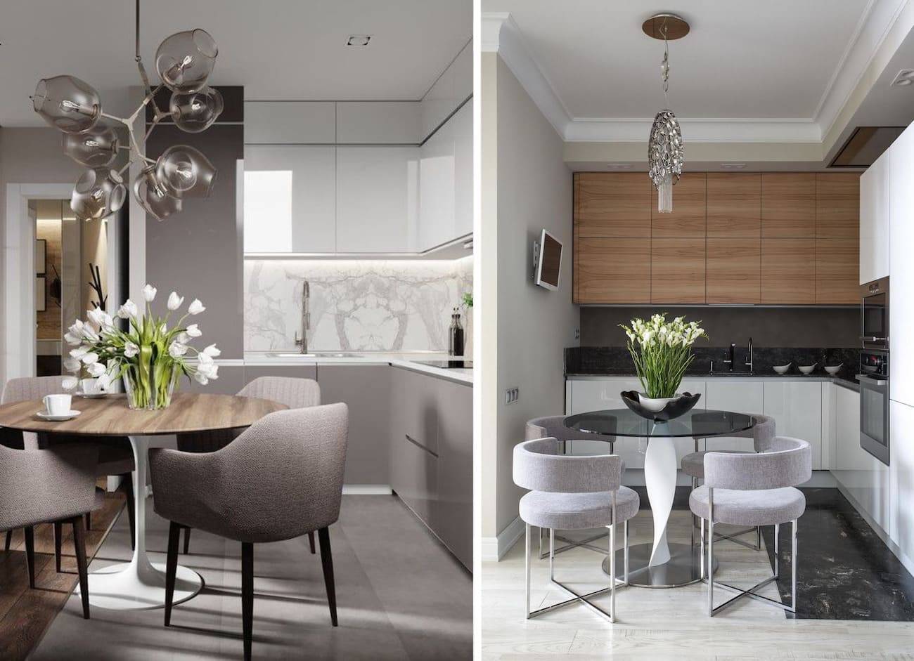 Устанавливают рядом высокие стулья, и романтическая обстановка обеденной зоны становится жемчужиной всего кухонного интерьера 2020.