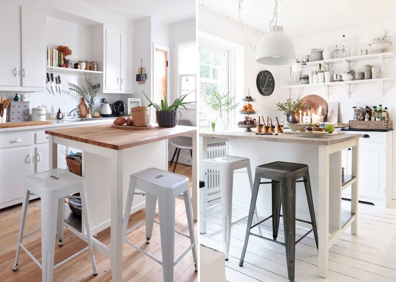 Отдельно стоящие столы будут занимать слишком много места на кухне, так что это действительно не вариант. Укромные уголки для завтрака-отличная идея.