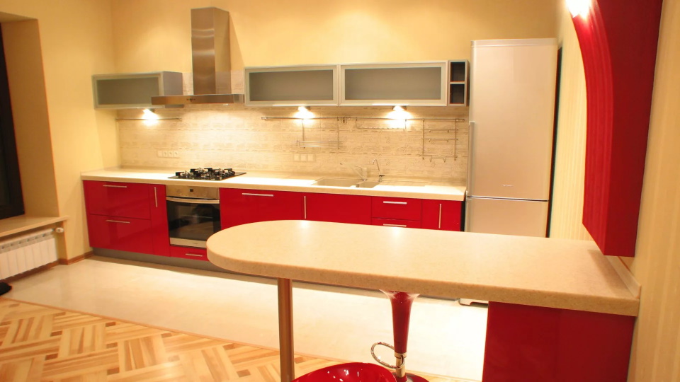 Современные барные стойки бывают различных конструкций и могут располагаться в разных местах кухни