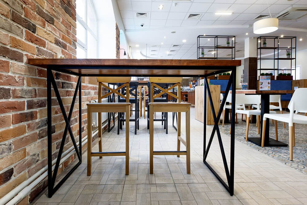 Выбирая отделку каркаса стола для бара, обратите внимание на другие предметы, имеющиеся в помещении. Например, если у уже имеющихся барных стульев хромированные каркасы, то отделку каркаса барного стола нужно выбирать гармоничную, соответствующую