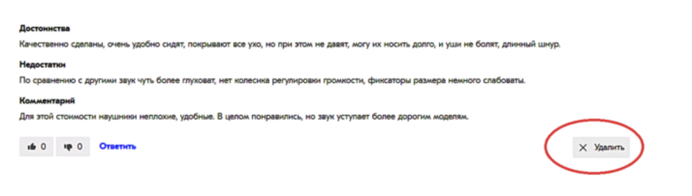 После того как отзыв прошел через руки модератора, он публикуется в карточке товара. В дальнейшем автор вправе его удалить, если посчитает текст не подходящим. Однако другие действия с сообщением будут недоступны.