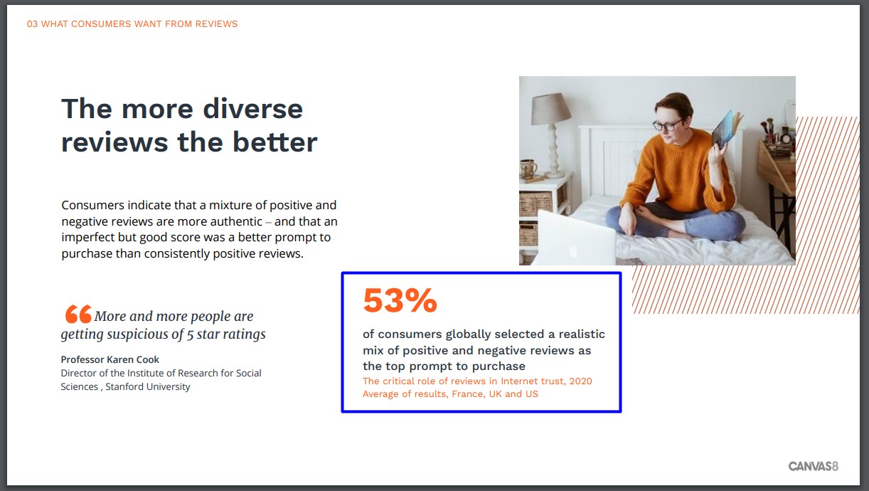 Потребители отмечают, что наличие как положительных, так и негативных отзывов — как более достоверная история — вызывает больше доверия.