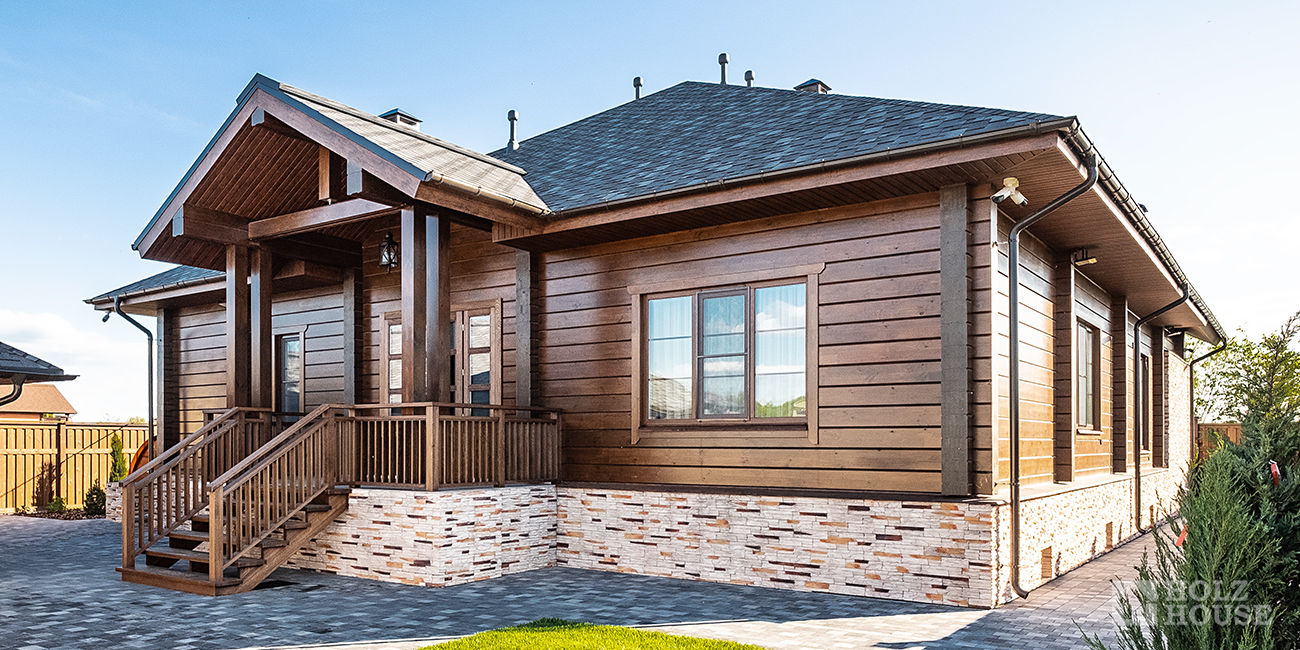 Дом интересен своей уникальностью и неповторимостью. Легкие каменные панели позволяют легко достичь этого.
