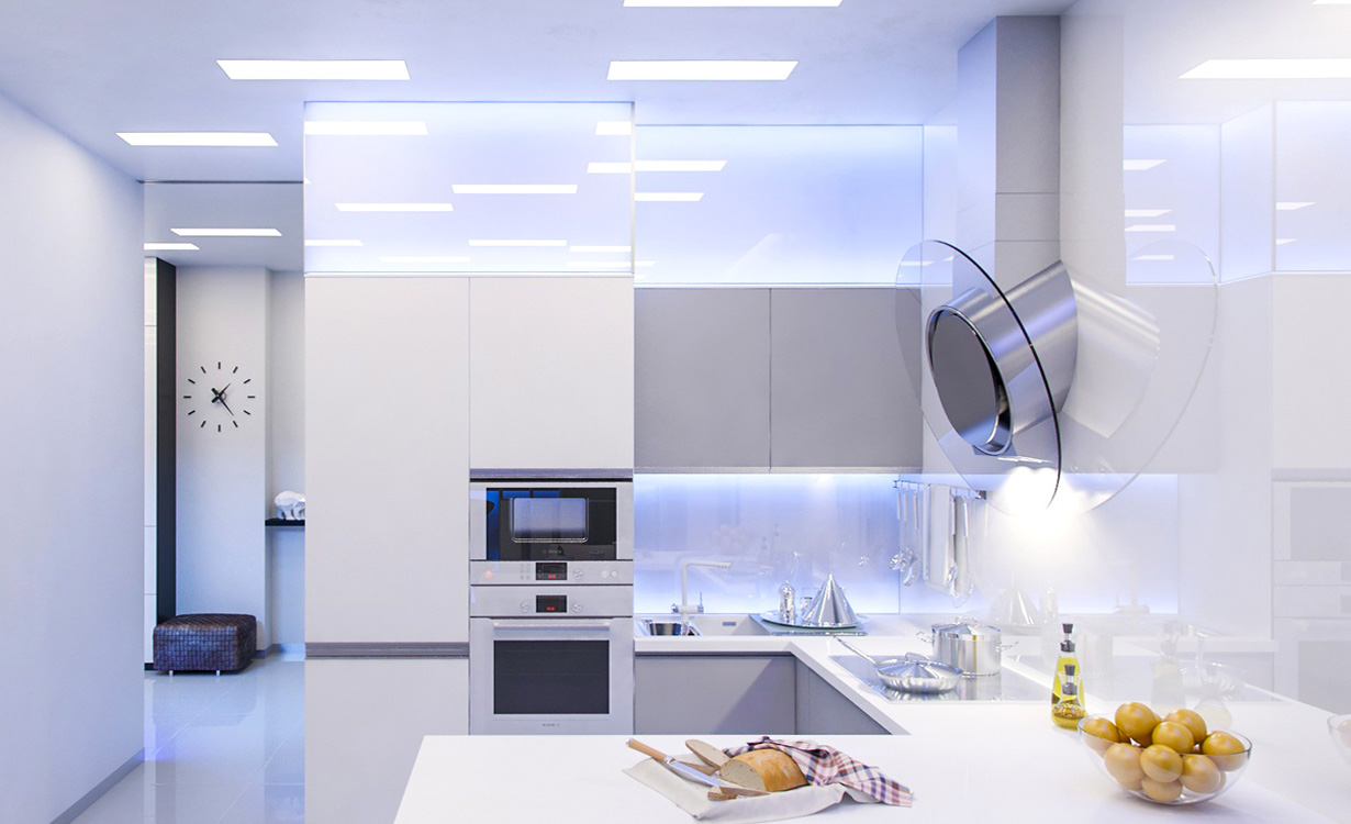 - Нужно тщательно продумать освещение кухни, чтобы был хорошо освещен каждый угол, где ведется приготовление пищи, а также место, где осуществляется ее прием.