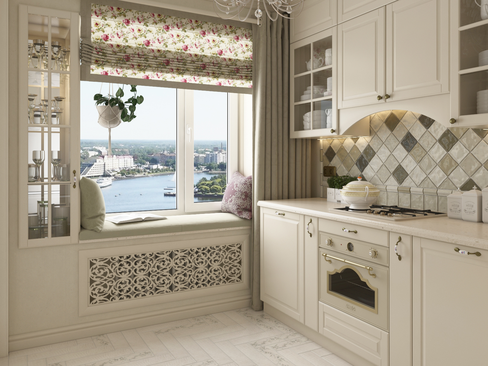 Текстиль – неотъемлемая часть кухни. Первым делом тебе понадобятся полотенца, тряпочки, салфетки и другие мелочи. Если ты хочешь красивую дизайнерскую кухню, выбирай их вместе и заранее. В интерьеры, которые предполагают обилие текстиля, вроде прованса, подойдут красивые занавески, подушки и накидки на стулья. С практичной точки зрения бери роллеты на окна.