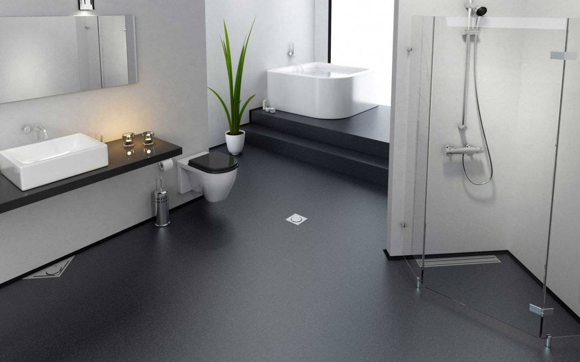 Одни из самых лучших полов для ванной комнаты, если говорить только о технических характеристиках и эстетике. По сути дела, это художественный вариант стяжки пола, который выполняется из прочного полимера или бетона с декоративными примесями.