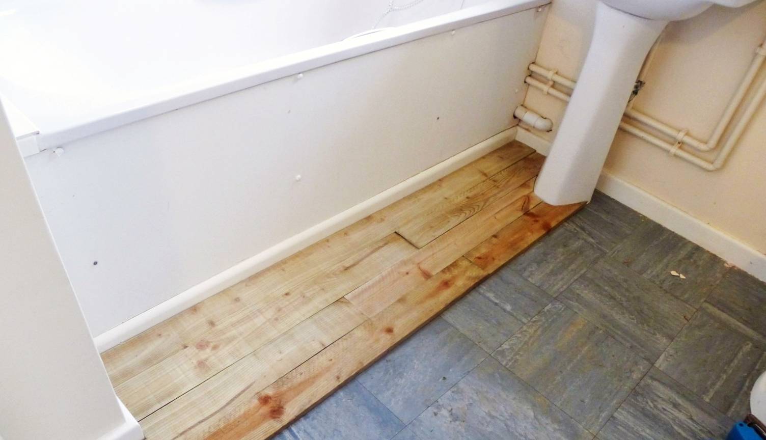- Ремонт пола в ванной комнате. Вполне может быть, что вам придется прибегнуть к капитальному или частичному ремонту пола, если вы заметили конкретные дефекты — сколы, трещины и так далее. Перед тем, как уложить дорогой материал на пол в ванной, экономить на ремонте мы не советуем;