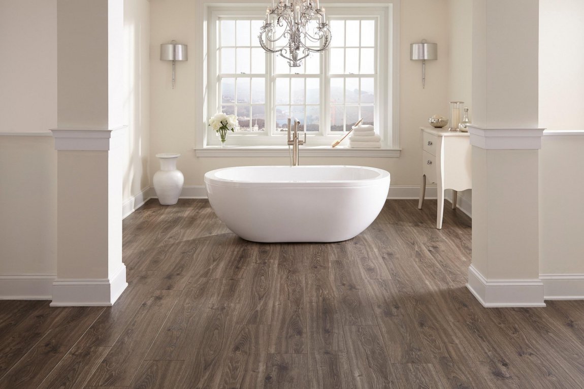 При этом следует отметить, что ламинат будет служить немного меньше, чем линолеум, но и выглядеть будет достойнее. Для ванной комнаты ламинат можно подобрать с влагостойкими свойствами. В противном случае в стыках может скапливаться вода, которая будет постепенно разрушать покрытие.