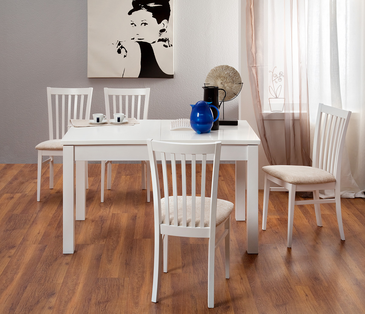 На ножки иногда клеят мягкие накладки, чтобы мебель не повредила покрытие. Такие накладки можно приклеить и самостоятельно. Дополнительный бонус – движения стульев станут почти бесшумными.
