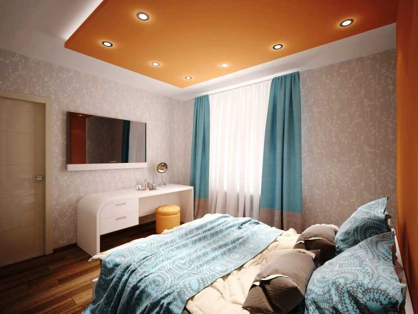 Дизайнеры не рекомендуют делать сложный многоуровневый потолок в небольшом пространстве. Можно просто натянуть глянцевое полотно – оно будет отражать свет от лампочек и давать дополнительное освещение. Если же вам все-таки хочется креативности, более низкий уровень следует делать по краям, а центр оставлять более глубоким.