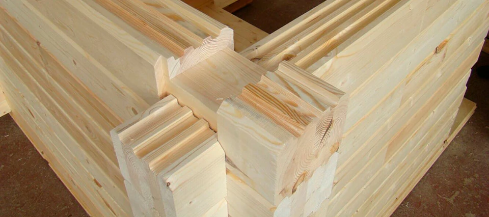Количество слоев в балке бывает от двух до пяти и определяется требуемой толщиной бруса. В конце производства из клееной балки со 100%-ной точностью вырезают брус с определенным видом замкового соединения.