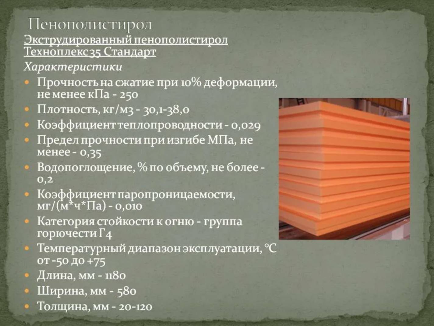 Обратимся к конкретным характеристикам экструдированного пенополистирола. Только после их нормальной оценки можно приступать к выбору того или иного утеплителя.