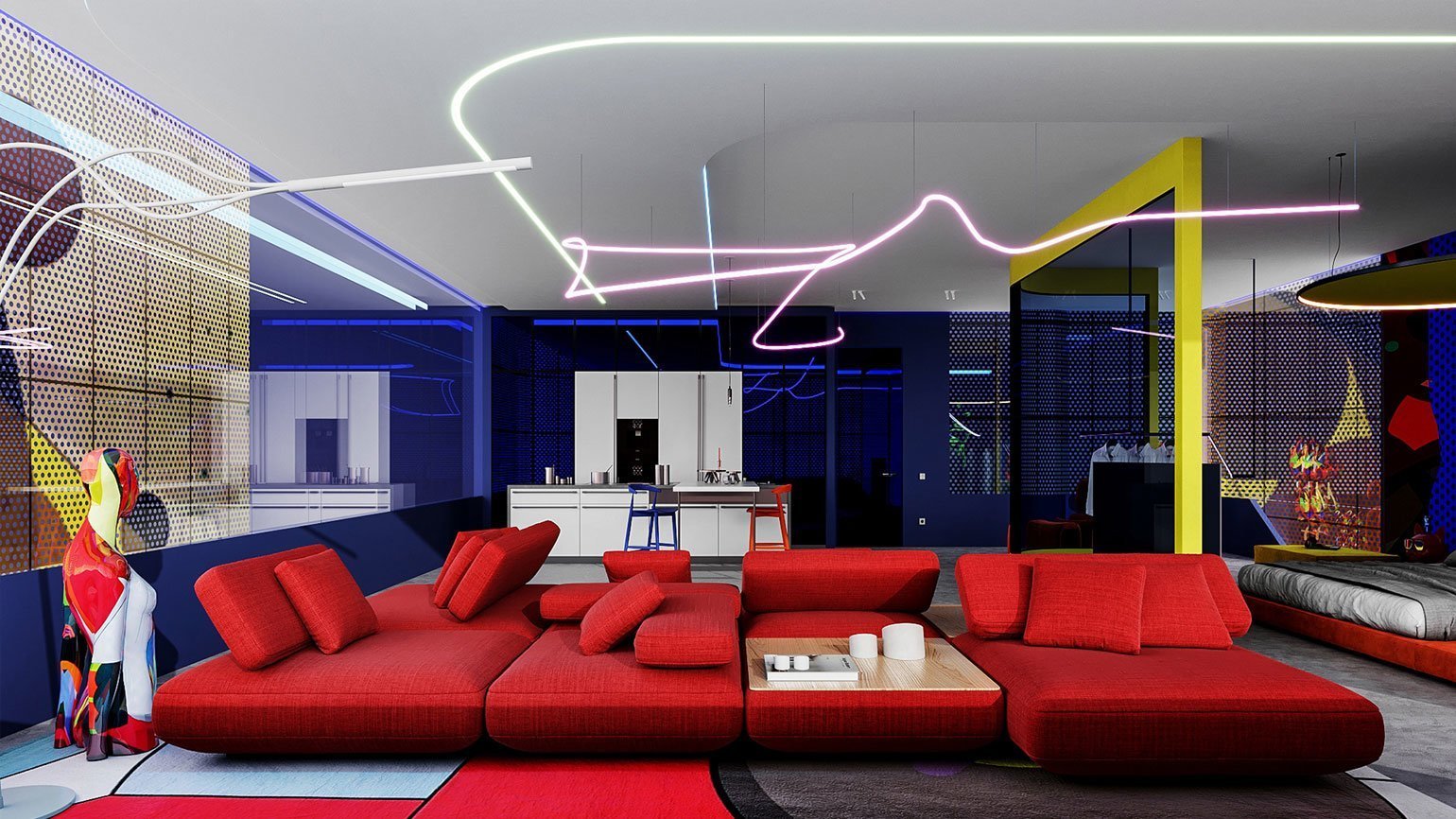 Особенности. Поп-арт отражает культуру потребления и стремление к ярким впечатлениям. Он создан в противовес классическим стандартам и является одним из самых эпатажных современных стилей. Такой дизайн часто используют и в жилых квартирах, и в коммерческих помещениях. В оформлении применяют знаковые символы поп-культуры, из-за чего пространство обретает атмосферу галереи.