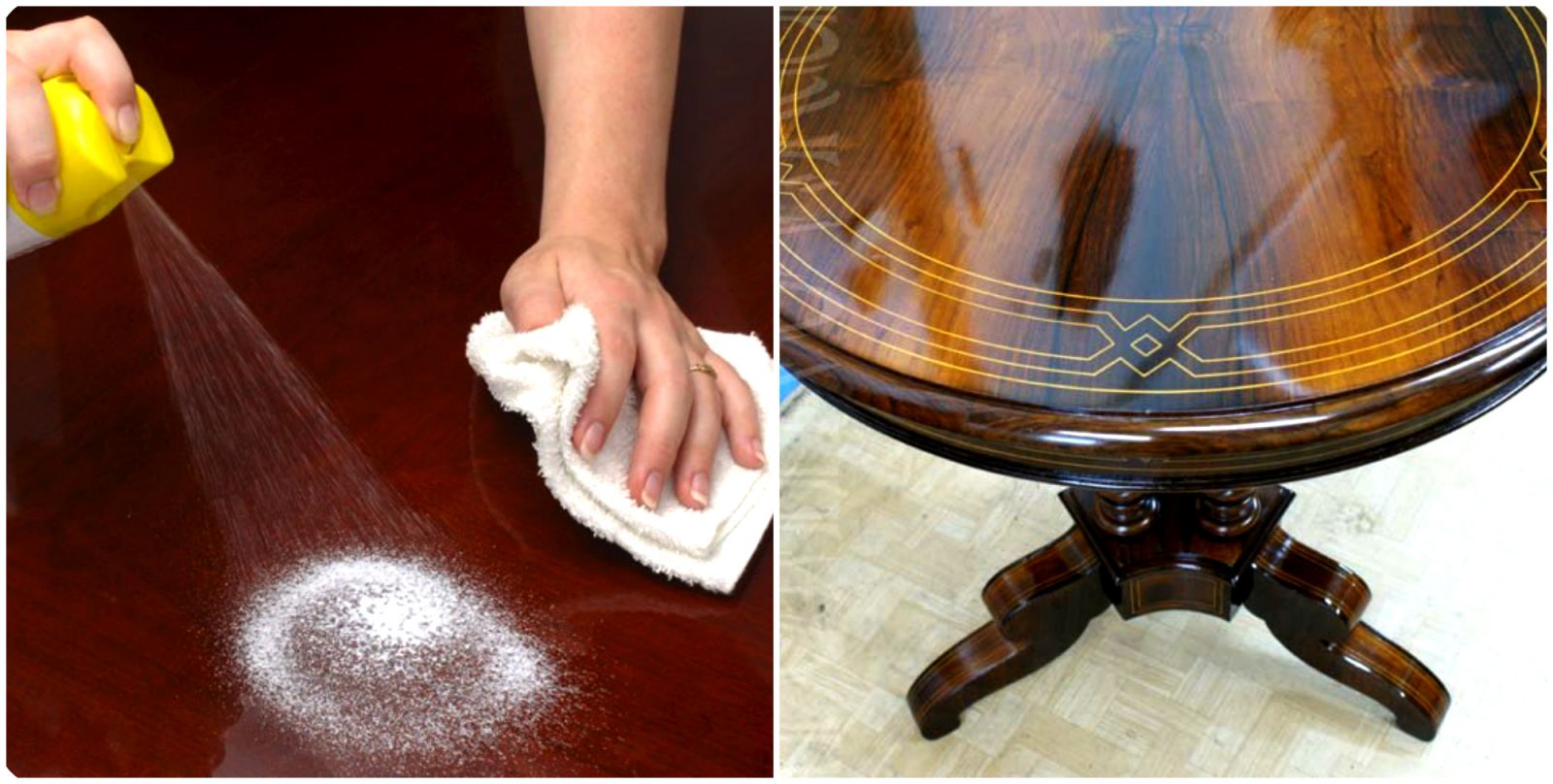 Ассортимент рынка бытовой химии стал безграничным относительно недавно, а полированная мебель не теряет своей популярности на протяжении многих десятилетий, соответственно, для ее очистки наши бабушки использовали не «Полироль», а подручные средства.