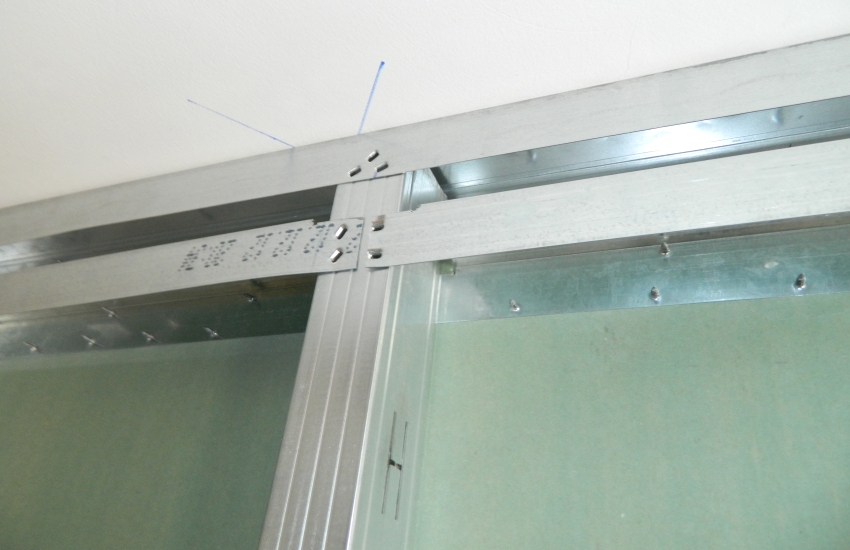 - В местах горизонтальных стыков листов гипсокартона нужно к вертикалному стеновому профилю прикрепить горизонтальный, срезав у него боковые стенки в местах пересечения с вертикальным профилем. Делать это правильно при помощи просекателя, потому что шляпки шурупов на фронтальной поверхности каркаса будут мешать плотному прилеганию гипсокартона.