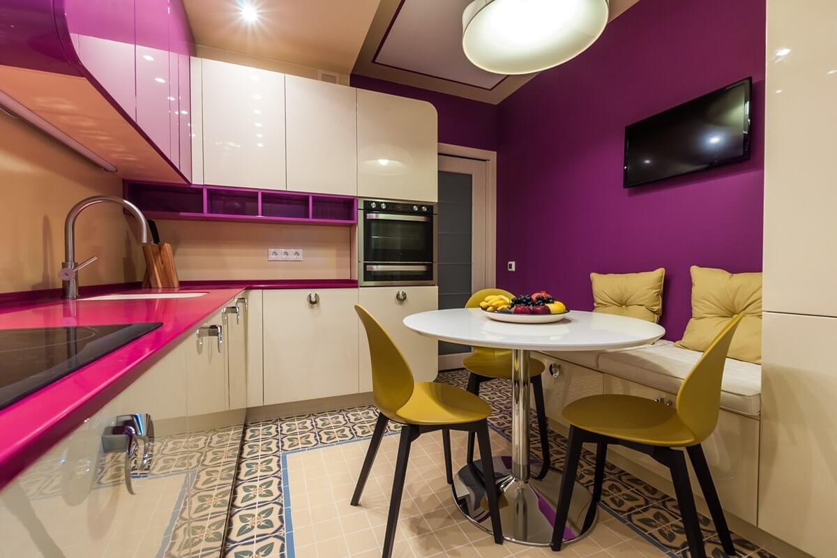 В интерьере кухни площадью 5-6 квадратных метров минимализм ценится превыше всего. Это не значит, что именно этот стиль вы должны взять за основу в вашем проекте, просто придерживайтесь его основных принципов при любом варианте оформления. Например, не покупайте слишком много ярких предметов, а если хотите разноцветную посуду – возьмите пастельную (розовый, голубой, желтый) гамму.