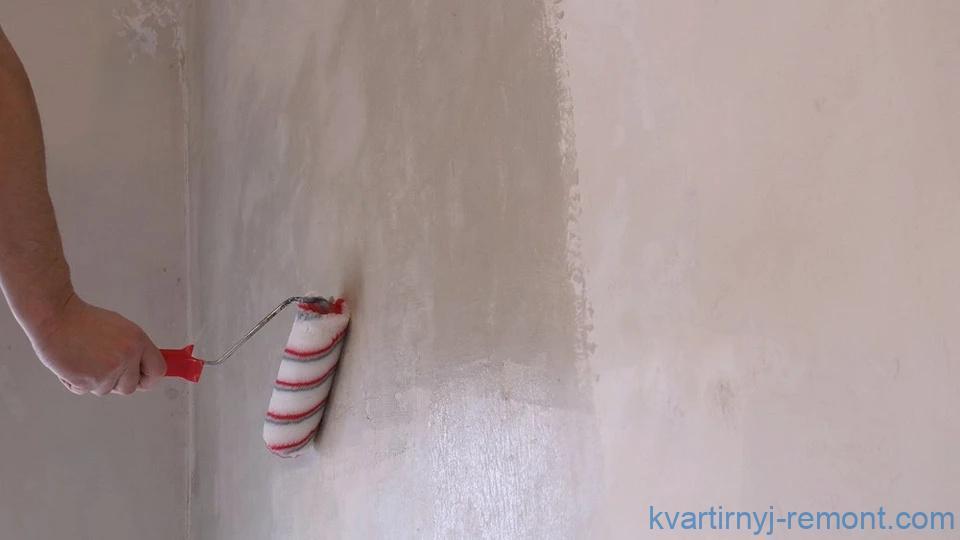 Наносим пару слоев грунтовки на небольшой участок стены и ждем его высыхания. Если через день не возникли мест деформации основы можно смело приступать к работе.