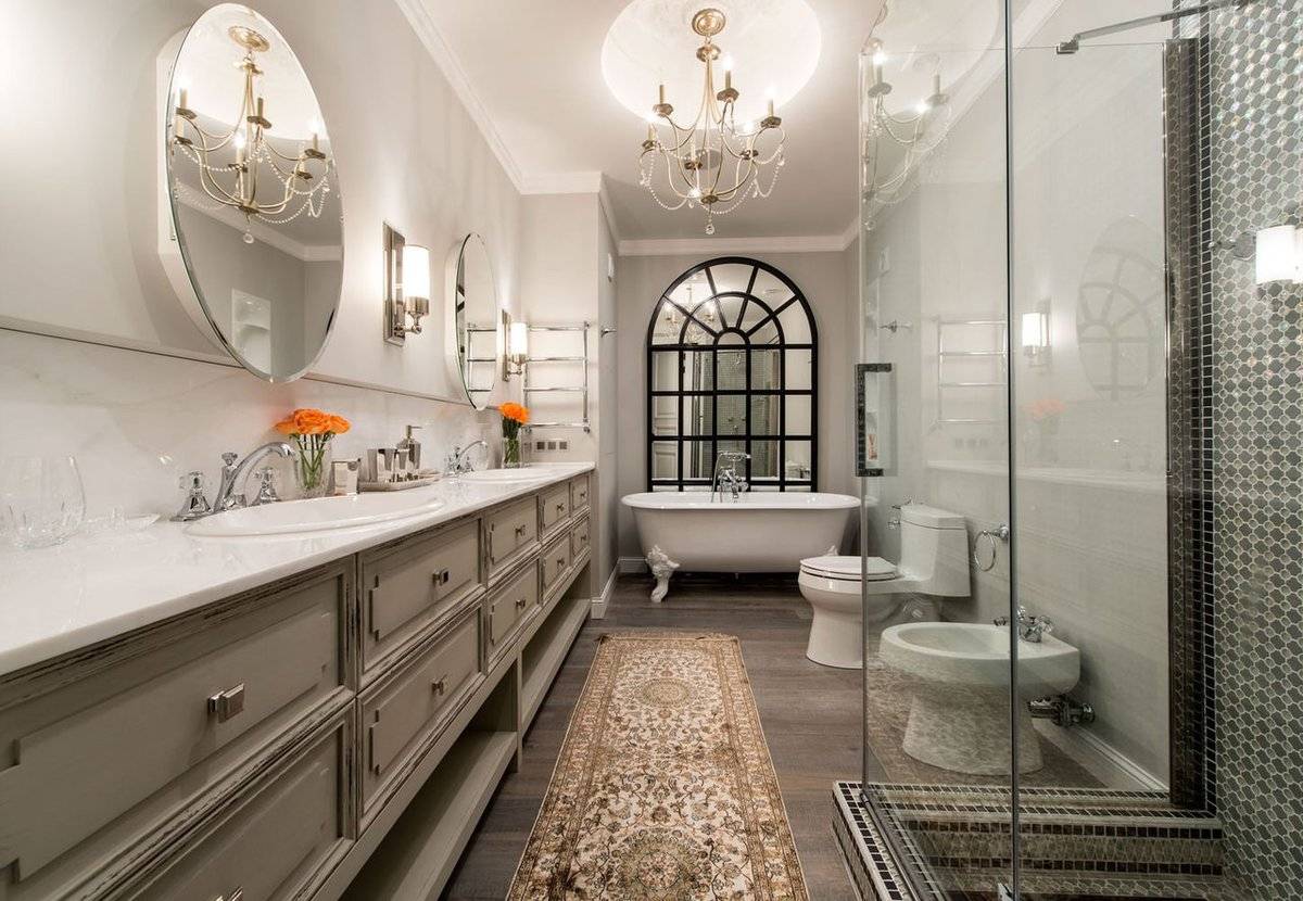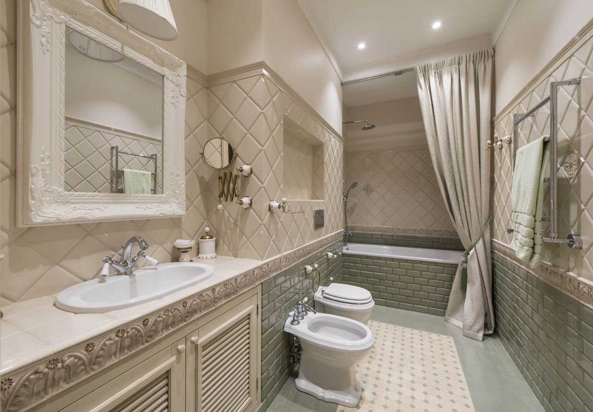 Каноны классического стиля отличаются простой, но с обустройством интерьера ванной нередко возникают сложности. Подобный нюанс не помешает созданию презентабельного дизайна.