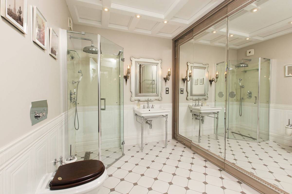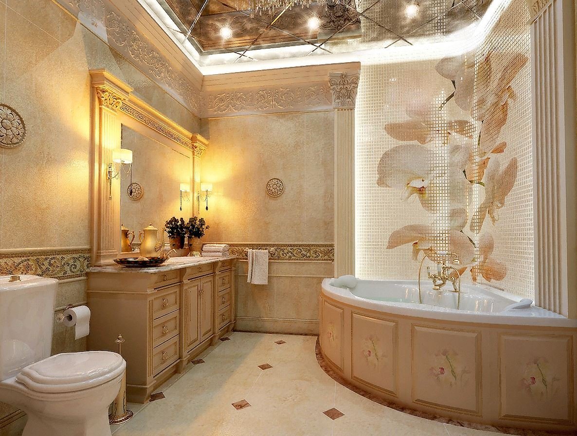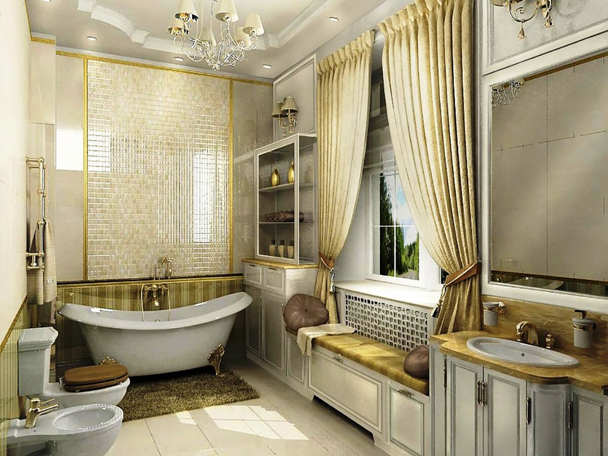 Классические интерьеры ванных комнат выглядят статусно и привлекательно, именно поэтому они столь популярны. Преимуществ у такого убранства более чем достаточно.