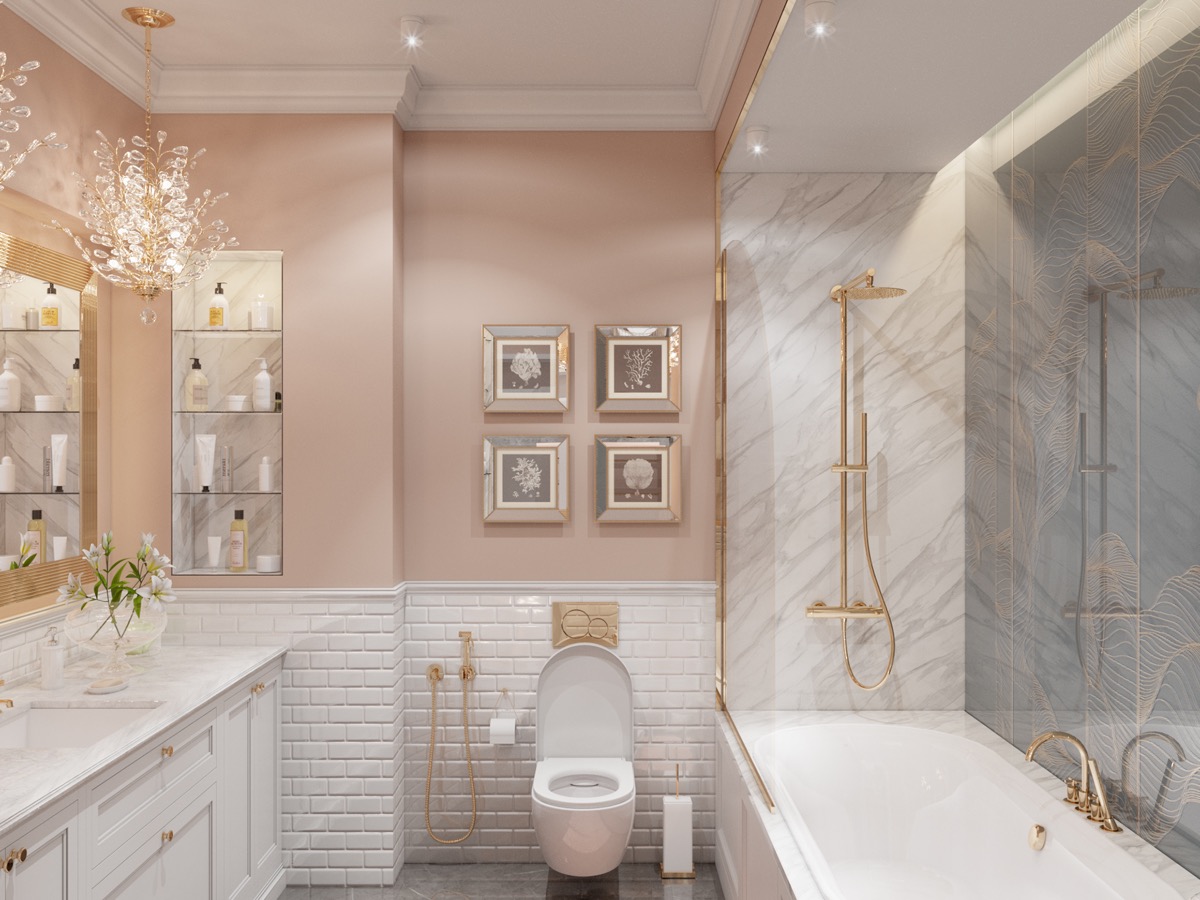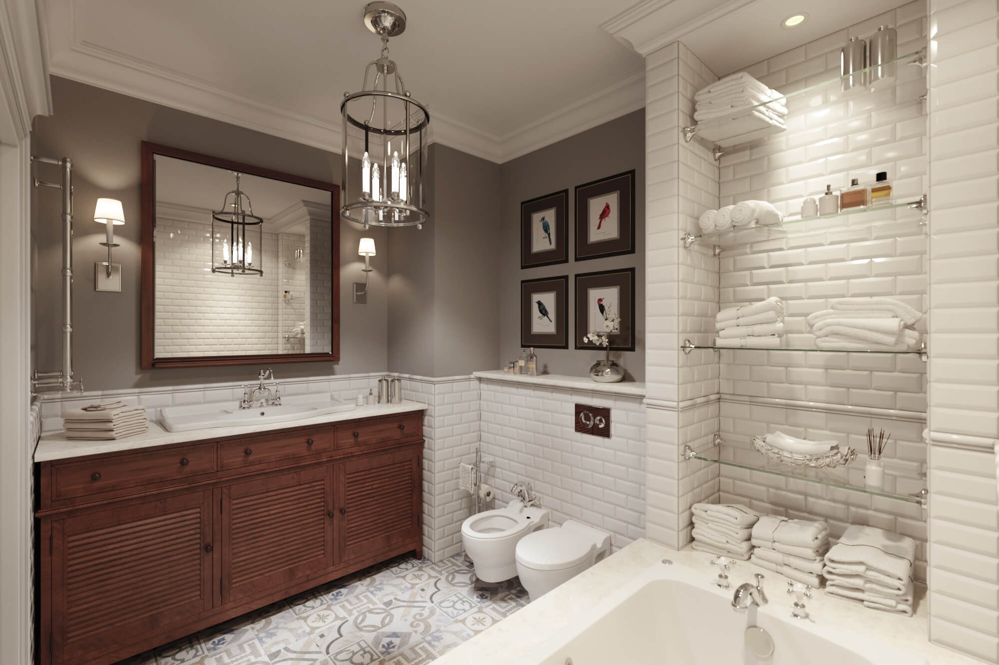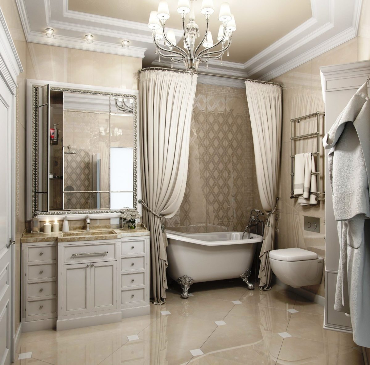 Классические интерьеры ванных комнат выглядят статусно и привлекательно, именно поэтому они столь популярны. Преимуществ у такого убранства более чем достаточно.