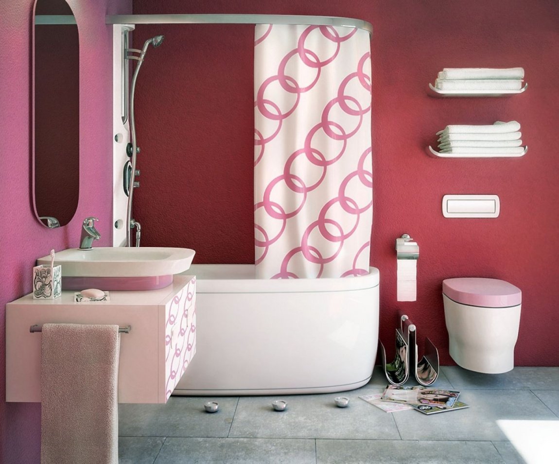 - Стены можно облицевать плиткой, но только в тех участках, где есть непосредственный контакт с водой. Остальную часть стен желательно прокрасить или оклеить обоями.