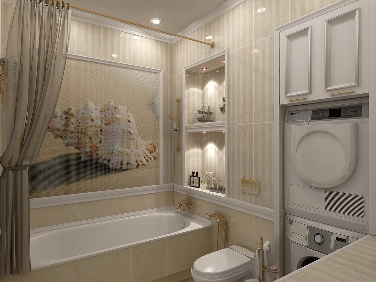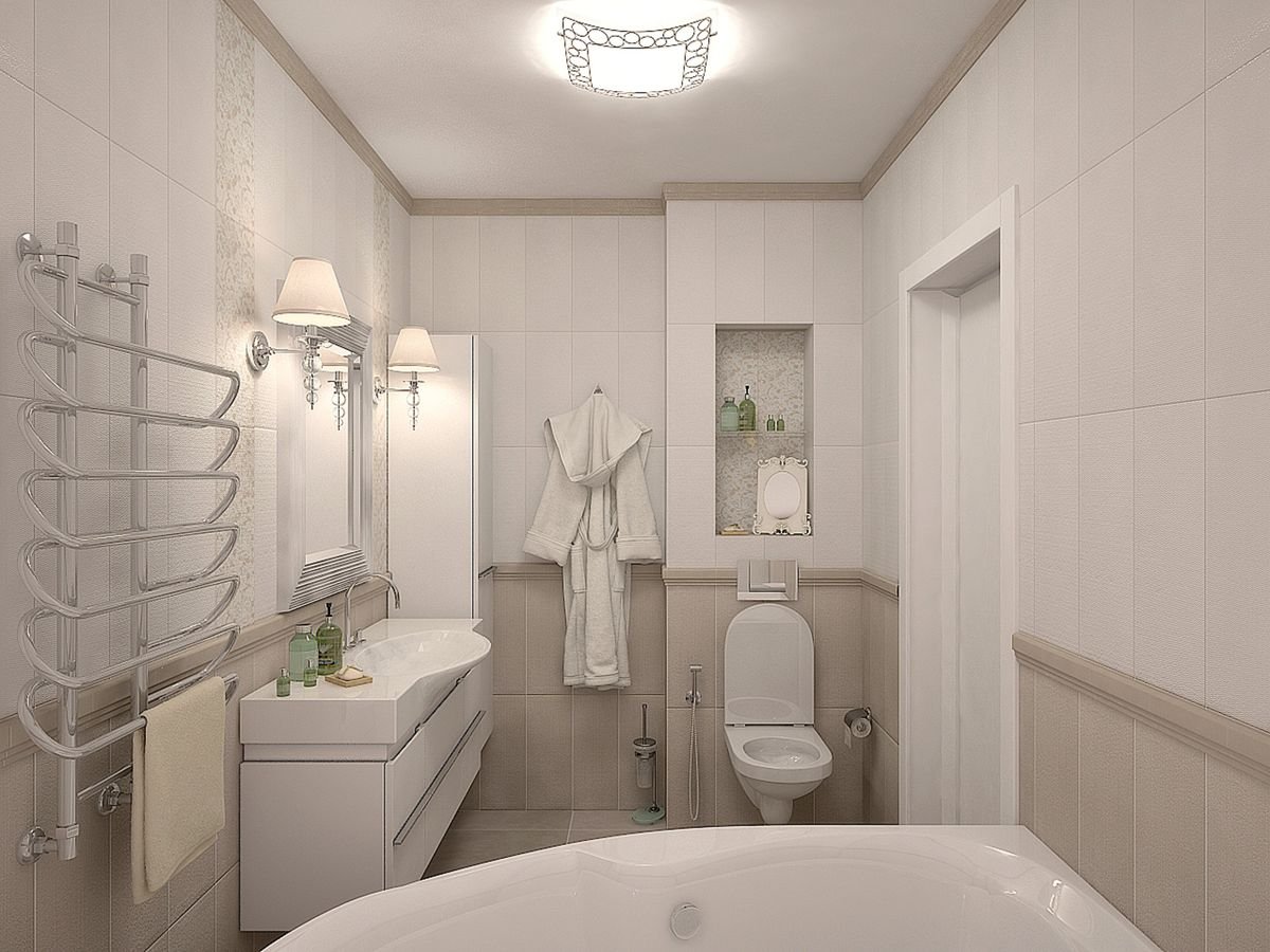 В малогабаритных классических ванных комнатах следует использовать светлые оттенки. Правильный подбор цветовой гаммы, отделочных материалов и мебели решит проблему ограниченного пространства, поможет рационально все спланировать.