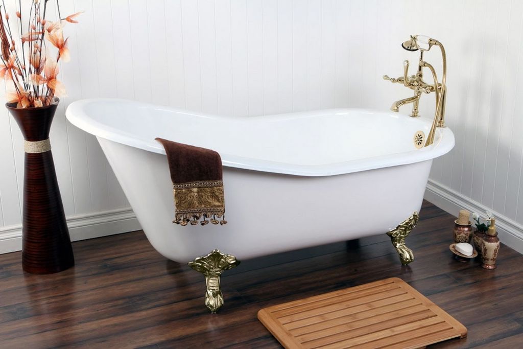 - Ванна должна быть непременно на ножках или подставках, чтобы между купальней и полом было место для мягкого уютного коврика.