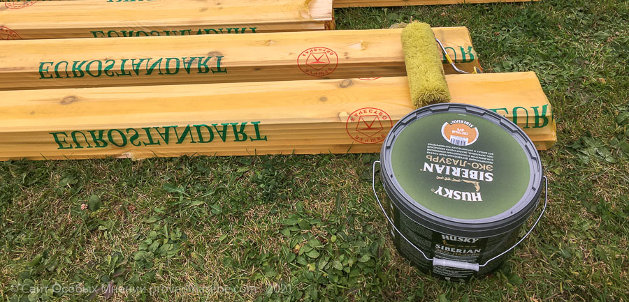 Для создания эстетичного цвета и защиты дерева от гниения используются продукты компании «Бор». Для покраски применяется тонизирующий лак, а для обработки деревозащитный состав. Цветовое решение каждый хозяин принимает сам, в данном случае использовался орех.