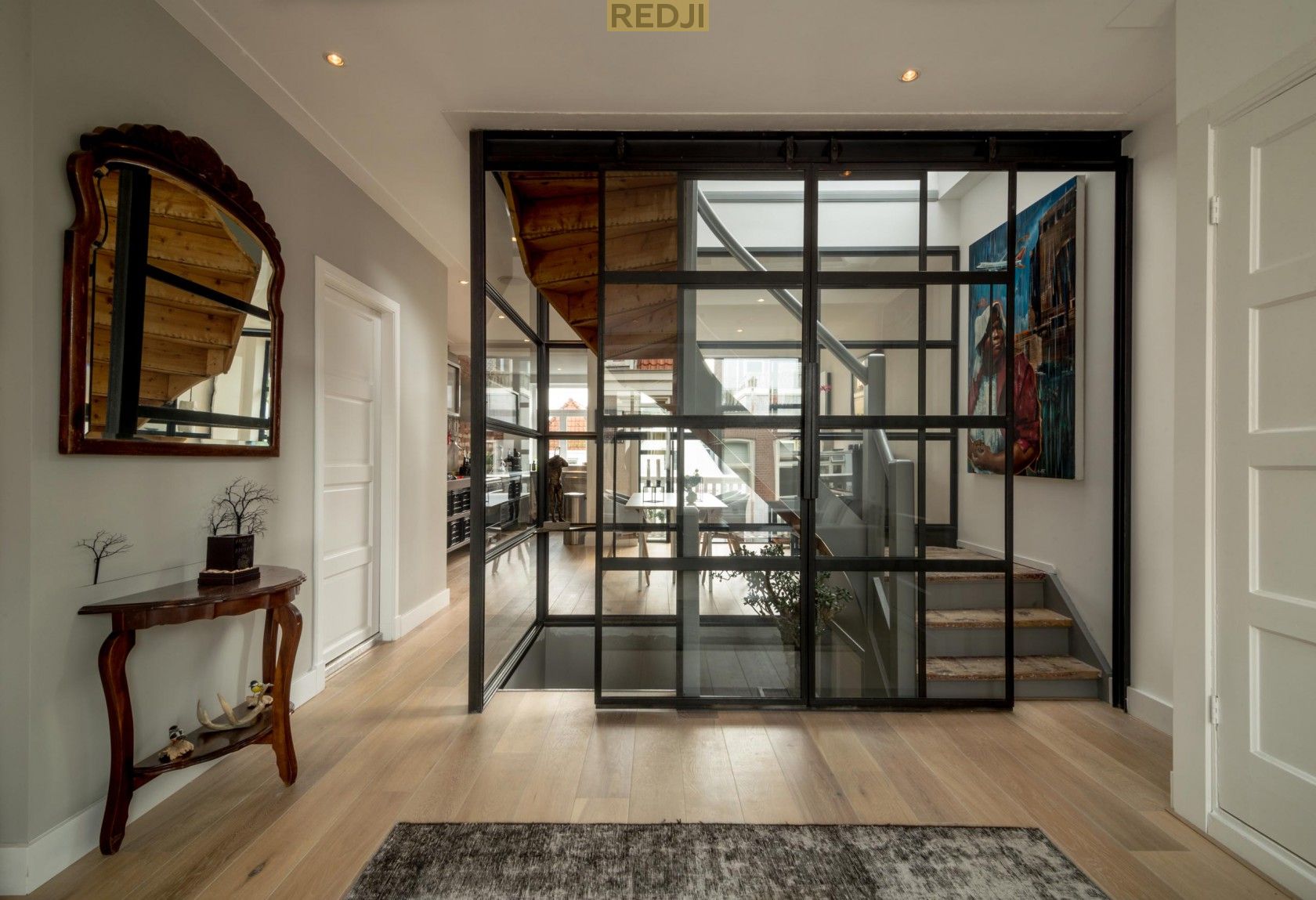 - В темном и узком коридоре недостаточно только двери в перегородке. Чтобы он выглядел просторнее и лучше освещался, желательно сделать оконные проемы. И не обязательно сквозные. Для шумоизоляции их можно остеклить, вставить стеклоблоки или витражное наполнение.