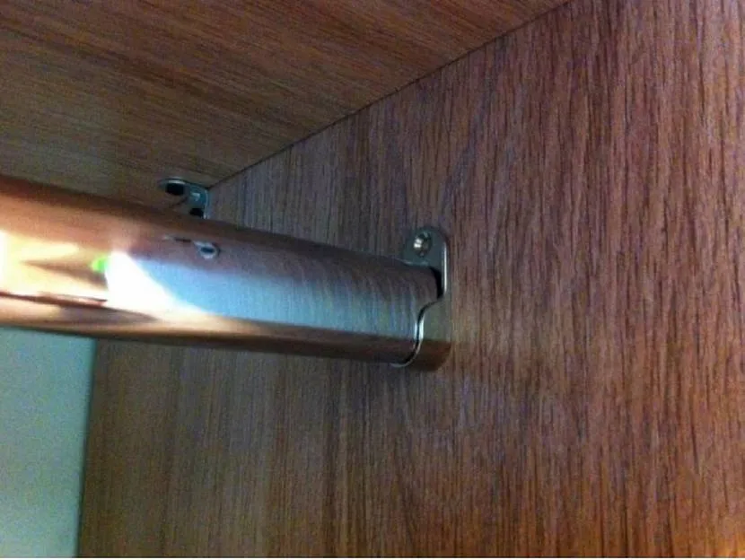 Установку труб для вещей осуществляют после монтажа полок. Для фиксации устройства используют мебельные крепежи для штанг. Перед процедурой производят замеры. Высота труб зависит от длины вещей:
