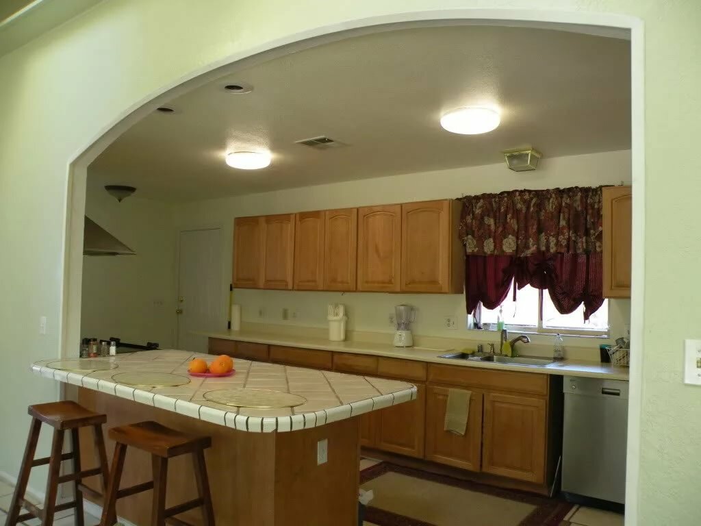 Для разграничения пространства на кухне можно использовать плавную арочную конструкцию, когда зона готовки немного отделяется от столовой, что привнесет новизну и комфорт всем членам семьи.