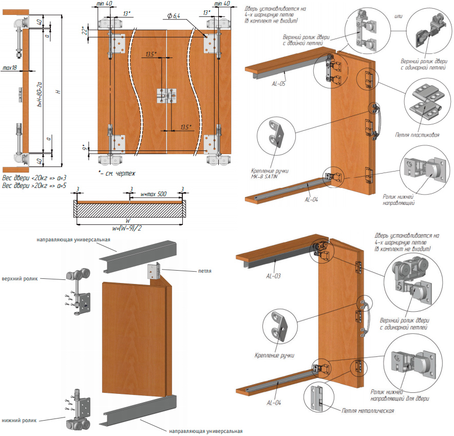 Учитывая общие замеры конструкции, необходимо определиться с дверями. Ширина каждой перегородки не должна быть больше 600 мм, иначе тяжелый элемент будет сильно давить на ролики и может случиться перекос.