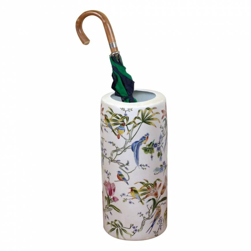Керамической бывает не только , но и подставка для зонтиков. При всем уважении к этому материалу, его благородной структуре и внешности, он хрупок. Если уверены в своей аккуратности, то можно брать. Дизайнеры предлагают широкий выбор зонтниц: в форме сов и слонов, резиновых сапог, ваз и подзорных труб — фантазию не остановить.