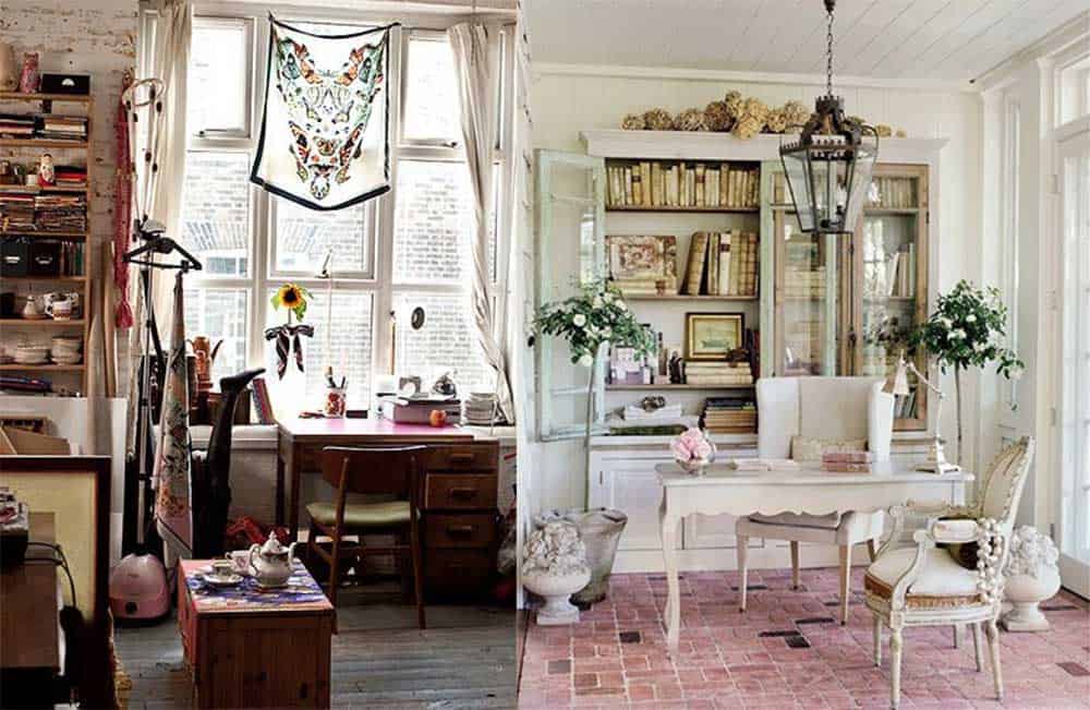 кантри – не самый подходящий стиль для домашнего кабинета, но все же имеет право на жизнь. Рабочий стол должен быть деревянным, массивным и грубым, текстиль для обивки мягкой мебели в клетку или полоску, в почете все природные неяркие оттенки;