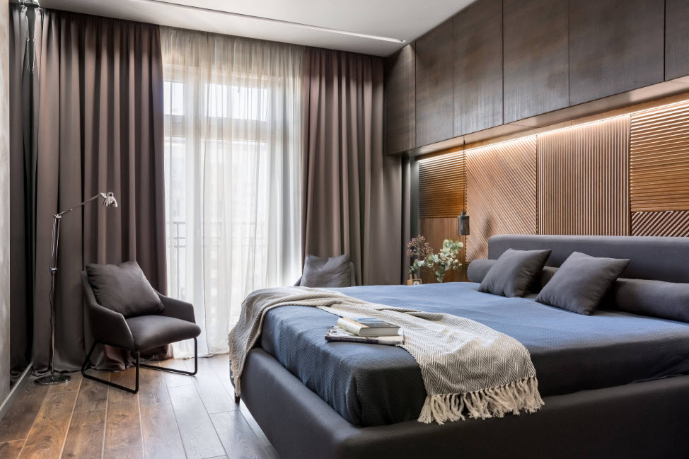 Звукоизоляция и амортизация: Некоторые текстуры могут иметь практическое значение в спальне, помогая снизить уровень шума и улучшить акустическую обстановку. Например, тяжелые шторы с текстильной подкладкой или звукоизоляционные панели могут смягчить звук и создать более спокойную атмосферу для сна и отдыха.