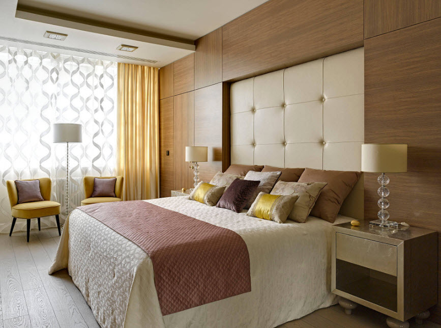 Конечно, не всем подойдет спальня в бежевых, персиковых, светло-голубых, зеленых, синих или коричневых тонах, и встречаются довольно неплохие варианты в очень ярких цветах. Но все же спокойная цветовая гамма – залог приятного отдыха