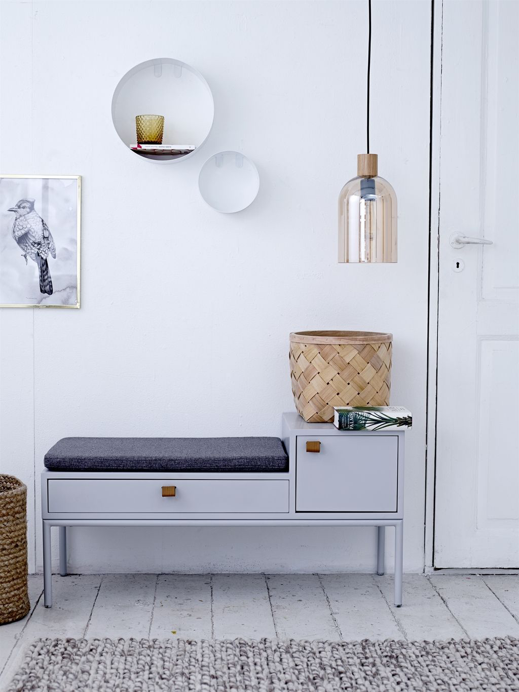 Простая и в то же время функциональная мебель для прихожей с ячейками для хранения обуви